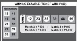 - Game 7, 8 and 9: Match 3 Win P100, Match 4 Win P400, Match 5 Win P1,000, Match 6 Win P5,000.